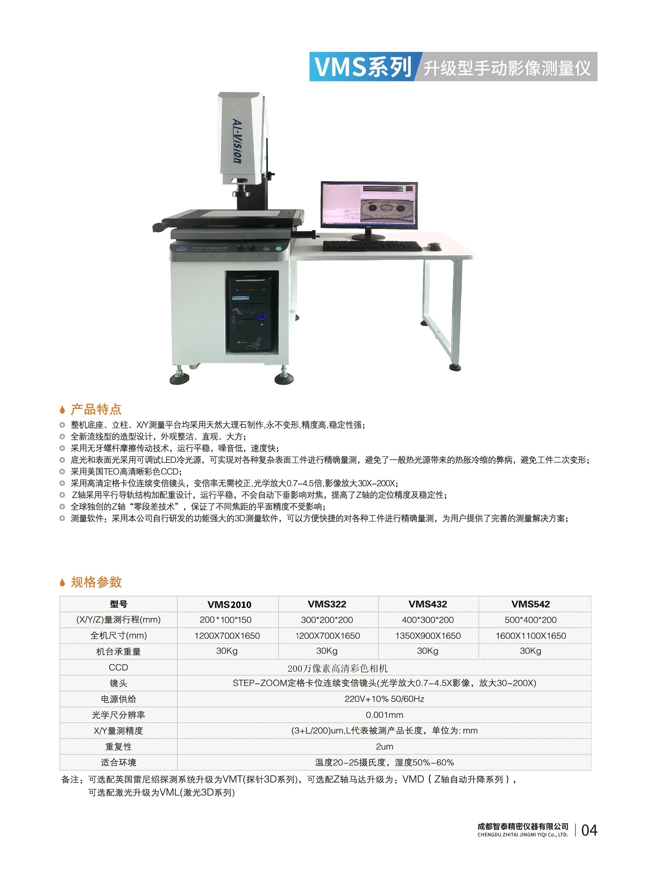成都智泰精密儀器有限公司專注于精密測量儀器,人工智能,智能制造領(lǐng)域,專業(yè)從事智能視覺自動化檢測解決方案的貿(mào)易型企業(yè)。公司成立于2011年,位于天府之國成都,現(xiàn)有行業(yè)精英十余人,辦公倉儲面積200余平米。 公司主要產(chǎn)品為精密光學(xué)影像測量儀,精密輪廓形狀測量儀,精密機器人定位系統(tǒng),精密智能視覺尺寸檢測儀器,精密表面缺陷智能檢測設(shè)備,工業(yè)工程特種機器人。 公司憑借過硬的技術(shù)實力和產(chǎn)品方案,率先進入智能視覺自動化檢測領(lǐng)域,推廣以精密智能視覺自動化檢測為基礎(chǔ)的機器人自動化應(yīng)用,公司不斷整合上下游的資源,擁有巨大的全產(chǎn)業(yè)鏈優(yōu)勢??蛻羧后w覆蓋了我國精密制造業(yè)的多數(shù)領(lǐng)域,包括航空、航天、軍工、汽車、新能源、光伏、食品,精密電子、精密機械、模具、PCB、LCD、五金、塑膠、醫(yī)療、教育、計量及科研院所等行業(yè)。 公司創(chuàng)新的產(chǎn)品能滿足生產(chǎn)與制造行業(yè)客戶的要求,訓(xùn)練有素的工程師能及時提供多種技術(shù)服務(wù),如解...